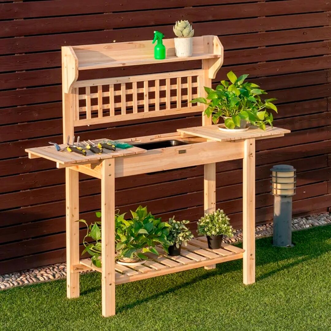 2 reviews for Costway Garden Potting Bench Workstation Table w_Sliding Tabletop Sink Shelves